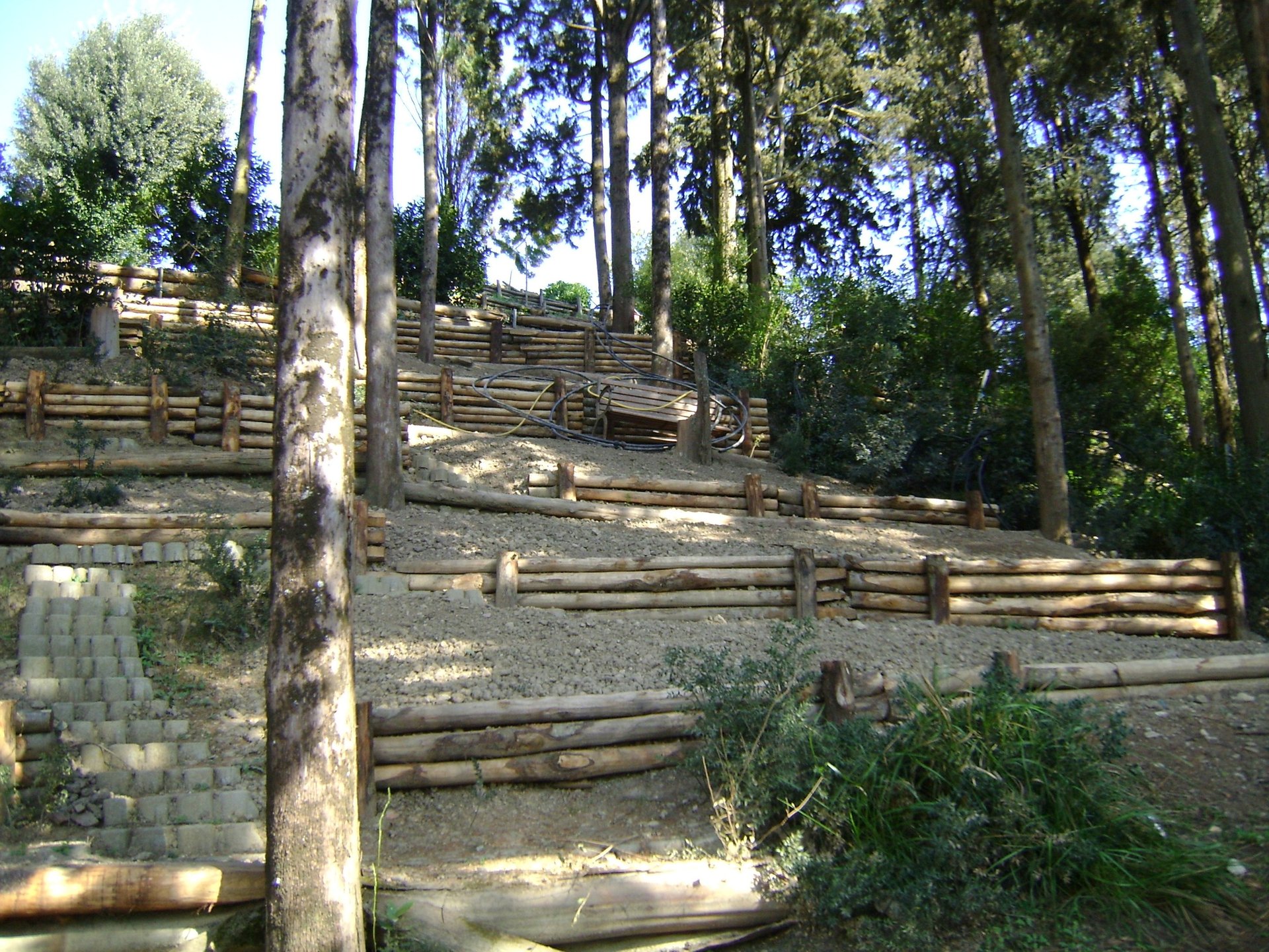 Le palificate in legno sono state utilizzate per contenere il terreno e suddividere il pendio in più livelli. Questo sistema permette di: