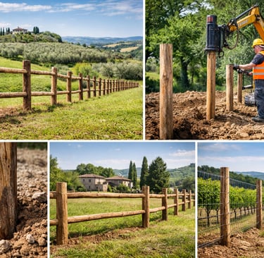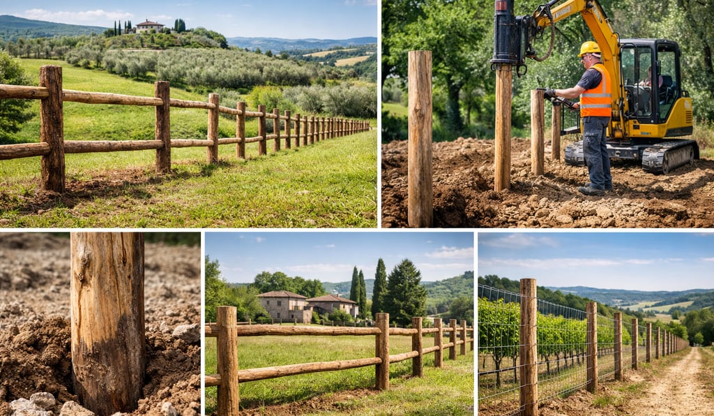 Realizziamo recinzioni con pali in castagno in Toscana. Scavi, infissione pali e posa professionale. Preventivo e sopralluogo su richiesta.